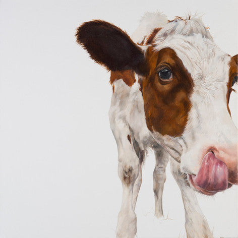 LIMITED EDITION Fine Art Giclée Print 1/250 by artist Tony O'Connor. This unmounted square bovine print is delivered worldwide in a robust tube. Each and every one is personally signed, titled and numbered by Tony. The cute 'Lickity Split' is sized approximately 457x457mm (18"x18") with an additional surrounding 40mm white border (overall size 537x537mm or 21"x21"), and is a large contemporary print of an original oil on canvas.